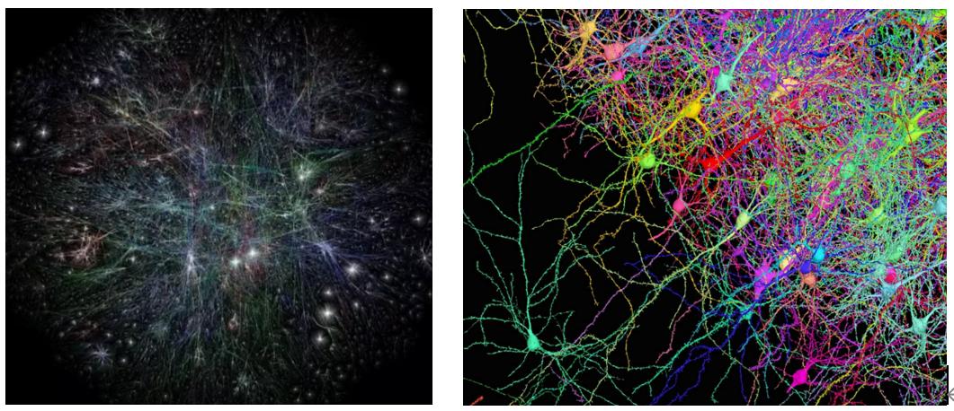 在讲工业互联网之前,我顺便讲一下网络的概念,下面两张图,左边是互联网,右边是神经网络。